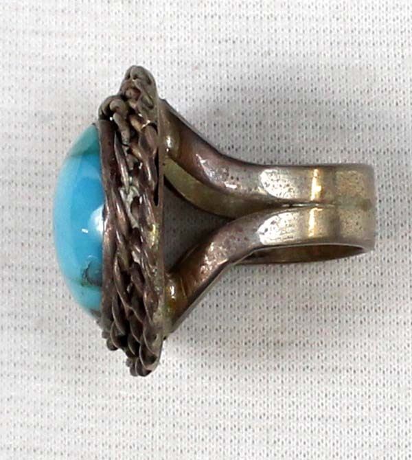 Navajo Old Pawn Sterling Turquoise Ring, Size 8