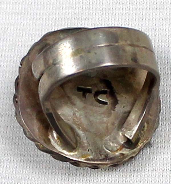 Vintage Native American Navajo Old Pawn Sterling Turquoise Ring by Tommy Singer, Size 8, hallmarked, measures 1''D, beautiful turquoise