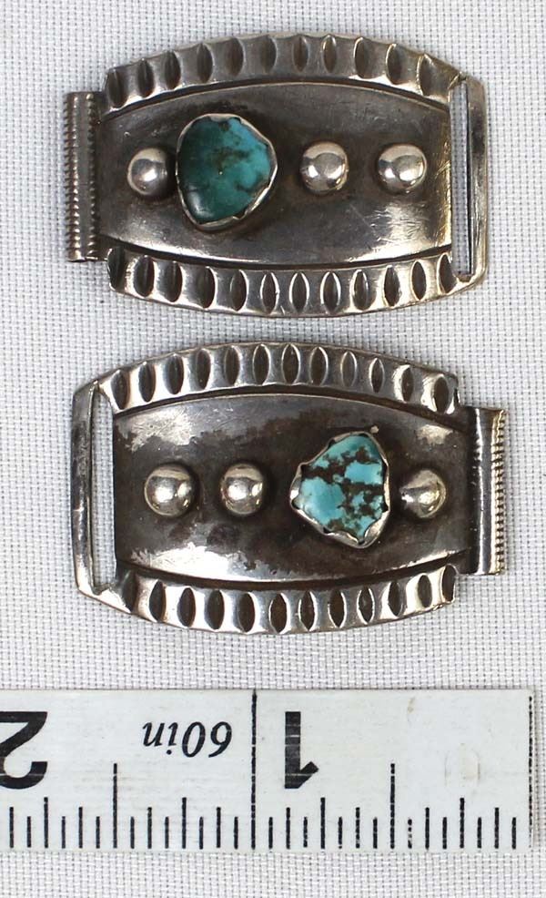 Native American Navajo Old Pawn Sterling Turquoise Watch Tips, tips measure 1.5'' x 1'', total gram wt. of 19.91