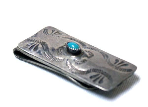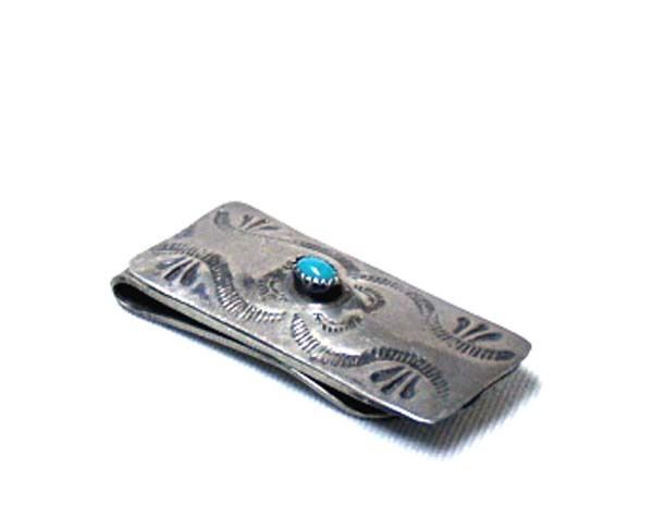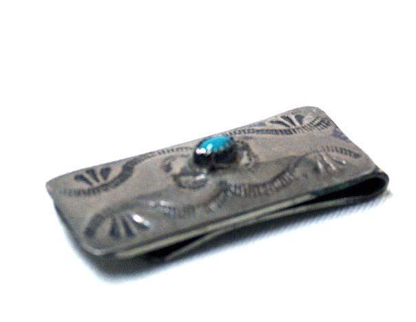 Native American Navajo Old Pawn Turquoise Money Clip, the hand stamped piece on top of the metal clip is sterling silver, measures 1.75'' x .75''