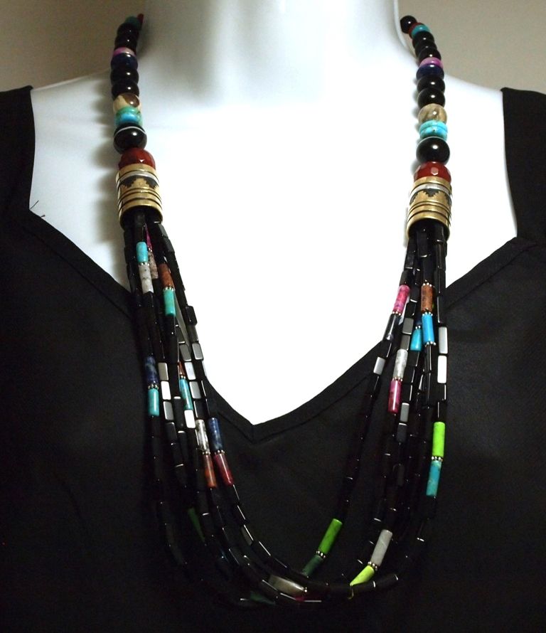 Navajo Onyx & Multi-Stone 6-Strand Necklace - Tommy Singer