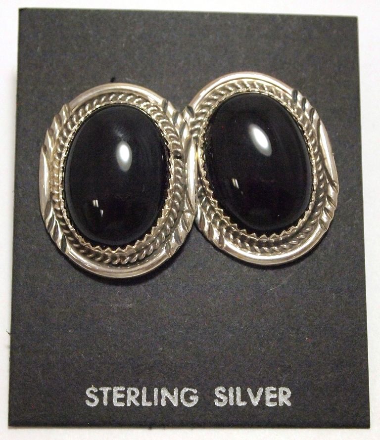 Navajo Onyx Sterling Silver Post Earrings - Herman Lee