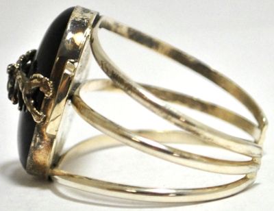 Navajo Onyx Sterling Silver Running Horses Cuff Bracelet - Running Bear