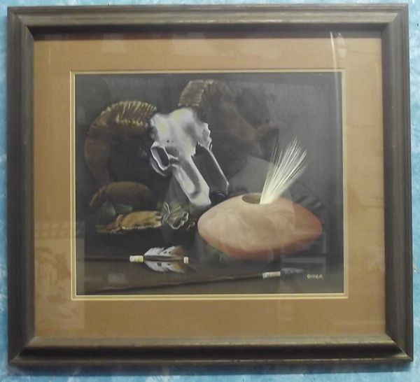 From the Southwestern Americana Collection Scottsdale AZ we have a Navajo Original Acrylic on Board by Guy Nez, Jr., framed and under glass, measures 19''W x 16''H, signed by artist in lower right hand corner, Artist Bio: Guy Nez, Jr. (1946-present), Din‚, Navajo Nation, was born in White Cone, Arizona, and attended Santa Fe Junior College on an art scholarship, and later attended Los Angeles Trade Technical College where he studied fine and commercial art. He has won numerous awards for his work. Nez is a versatile artist, working as a jeweler, potter, sculptor and painter. Nez's expertise and knowledge of ceremonies and clothing of his people is well illustrated in his paintings. His depiction is true to character. Nez is an outstanding painter.