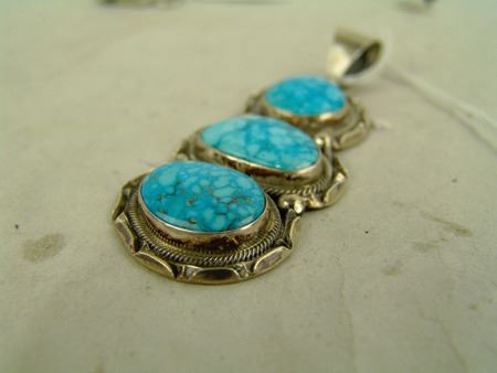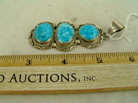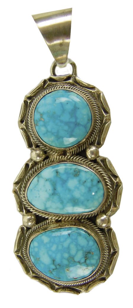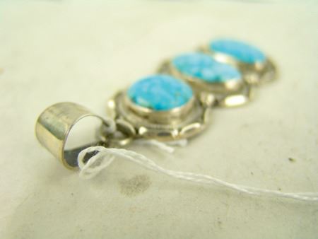 Late 1900s, Beautiful three-stone all-silver pendant with beautiful light blue turquoise. Very good condition. 2-1/2" x 1"