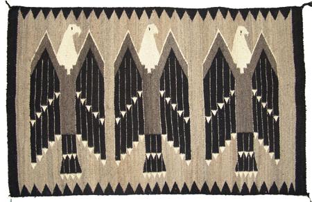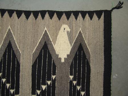 Very unique natural homespun all wool rug with with eagle figures. Condition: very good. 39" x 24-1/2"