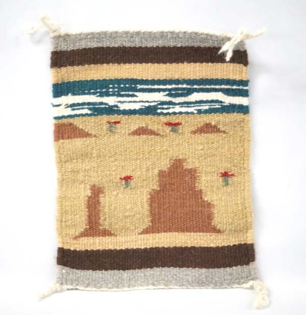 Native American Navajo Pictorial Textile Sampler Rug, measures 9'' x 12'', four cornered tassels intact