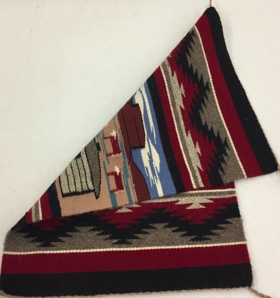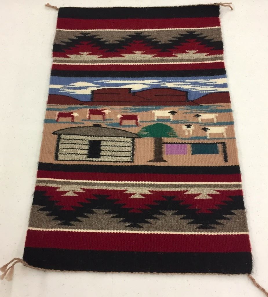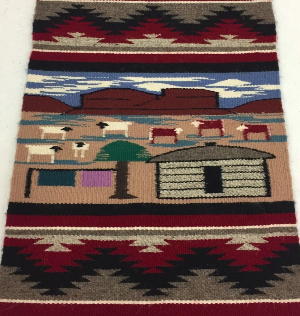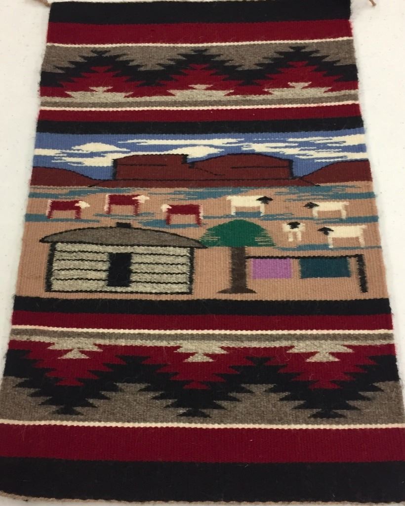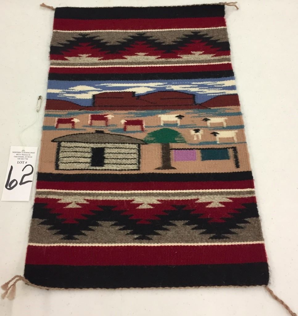 Maker: Unknown Navajo weaver. Approx. Age: Circa 1980s. Size: 16” x 24”. Condition: Good. Additional Info: Nice little Navajo textile with a tradition pictorial scene. Please look closely at the pictures - they are an important part of our description. Shipping: There will be a $5 handling / packaging fee for shipping this lot. The actual cost of postage will be added on top of that.