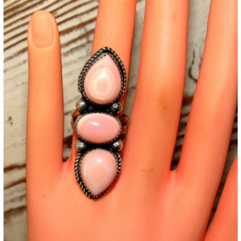 Navajo Pink Conch Cluster Ring Size 8 Adjustable Sterling Silver T. Long