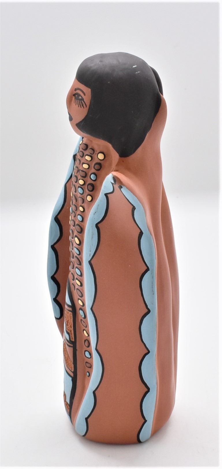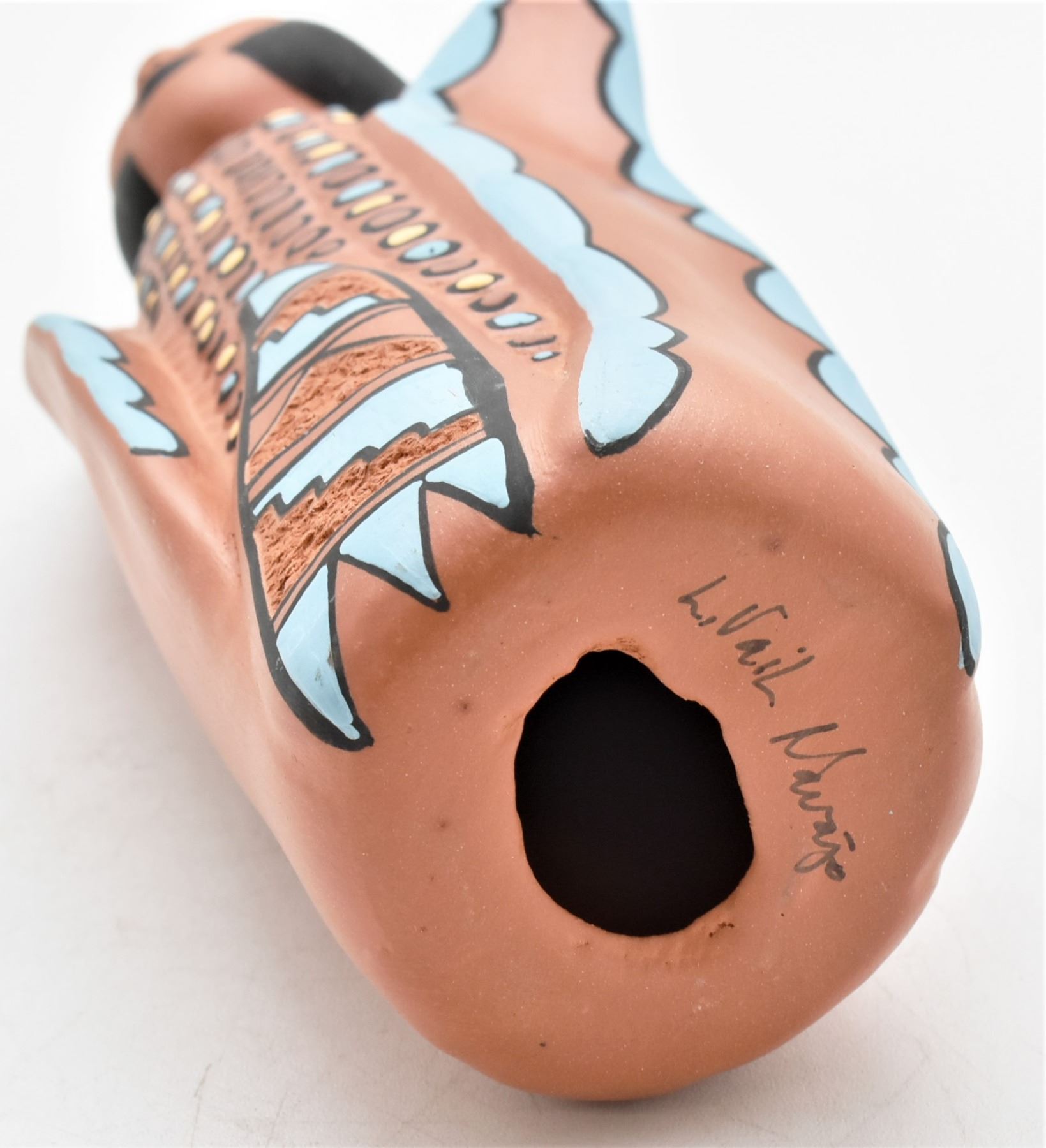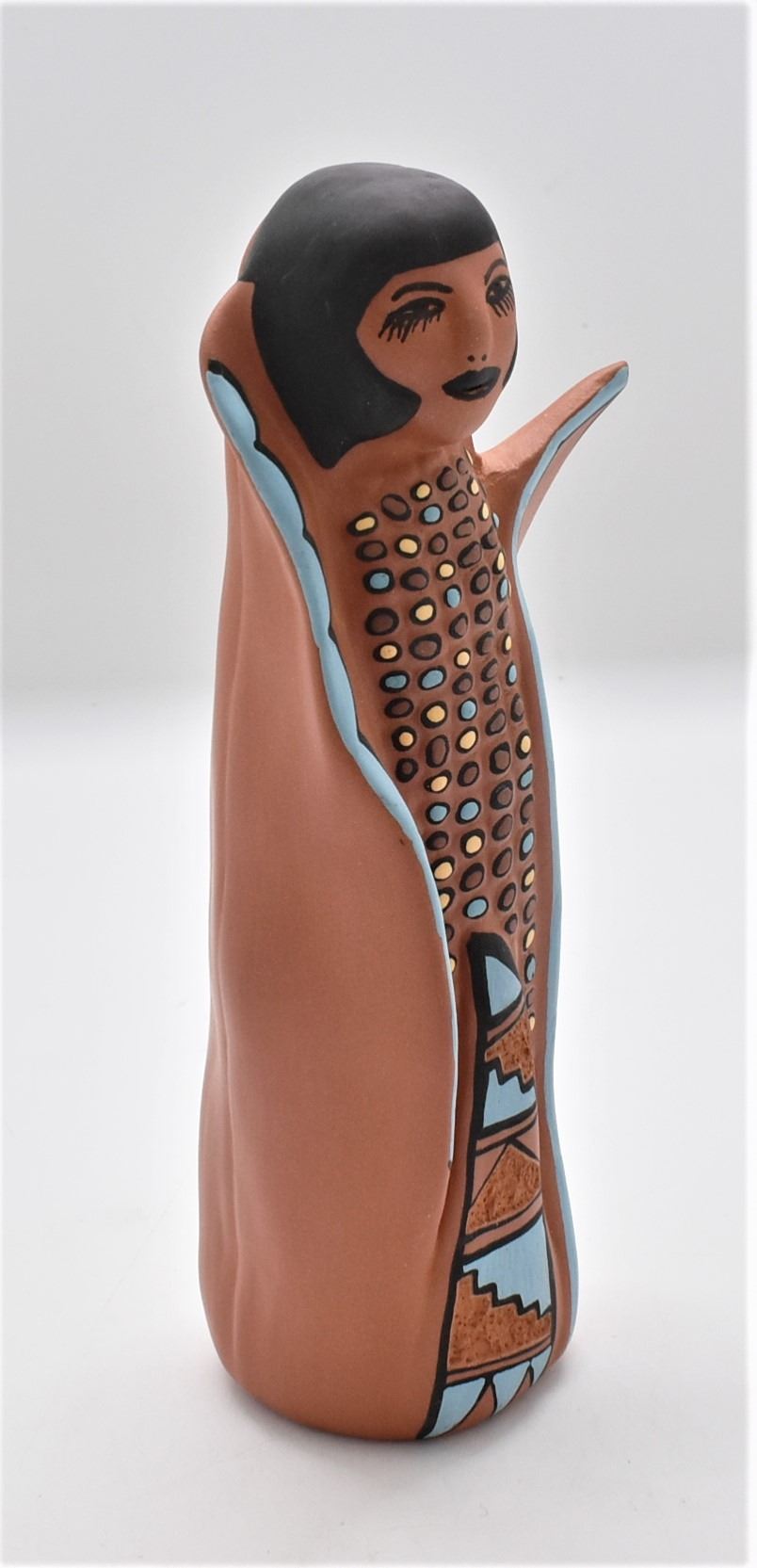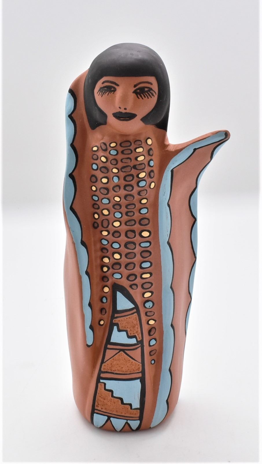Native American Navajo Pottery Corn Maiden Storyteller by L. Vail, measures 8.5''H x 3.5''W x 2.75'' and is signed on the bottom