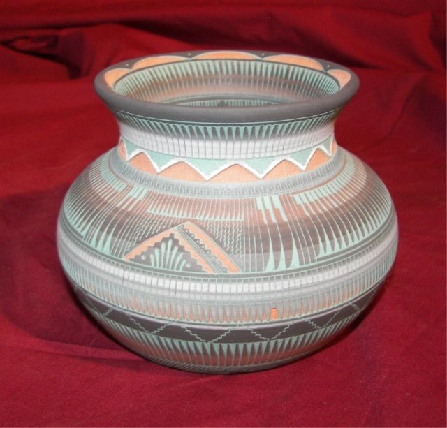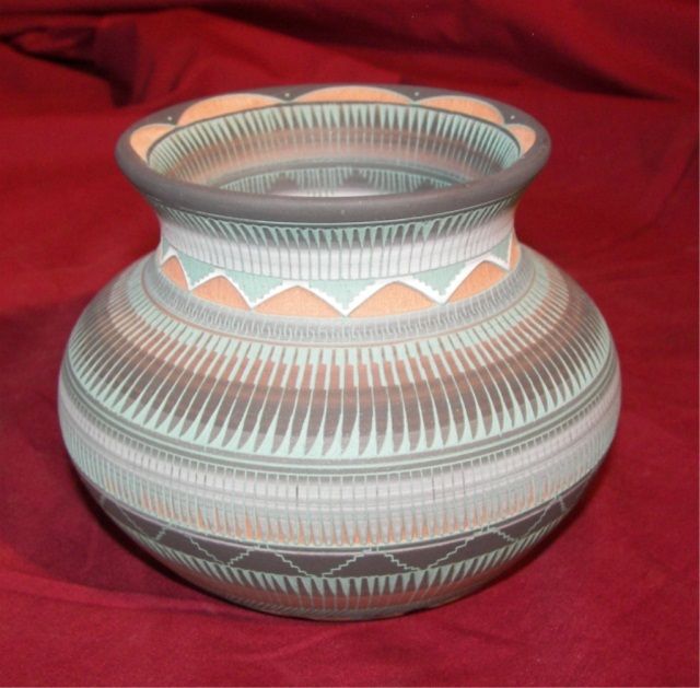 Navajo Pottery, Lori Smith (7546) Navajo Pottery, Lori Smith Of The Near Mountain High Tower Clan, 4" Tall 5" Diameter, Signed Bottom