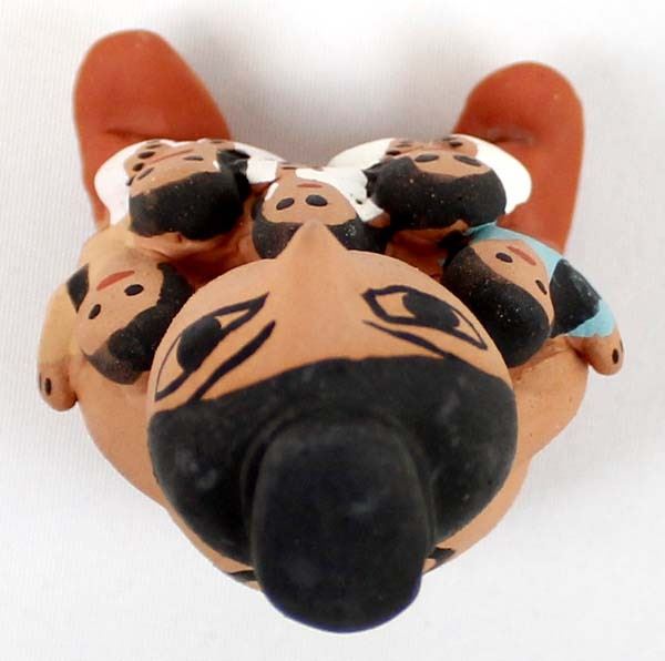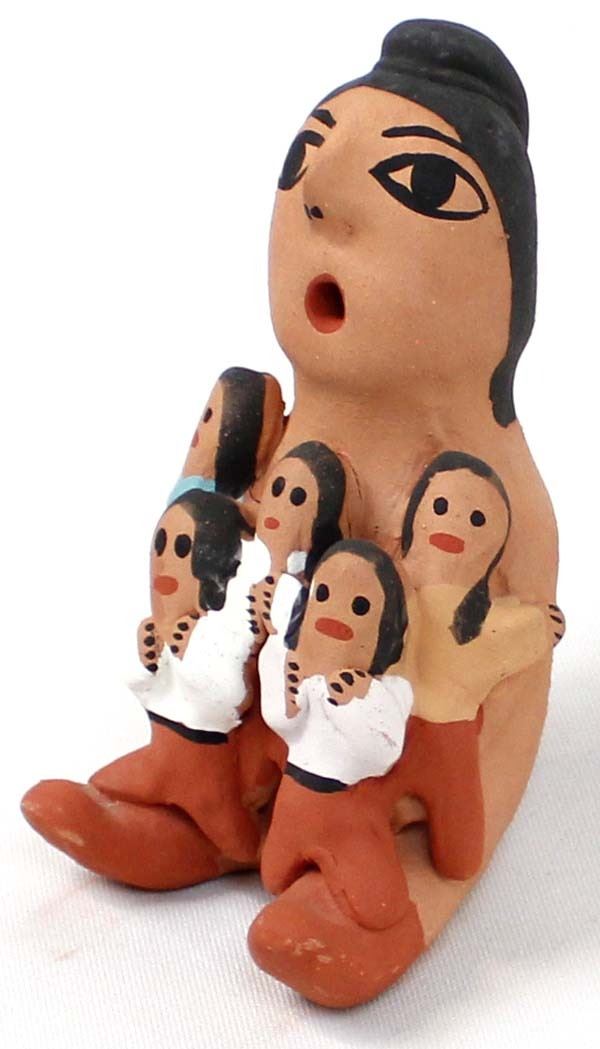 Native American Navajo Pottery Storyteller by Geneve Bitonie, measures 4.5'' x 3'' x 2.5'' and has artist's initials on the bottom