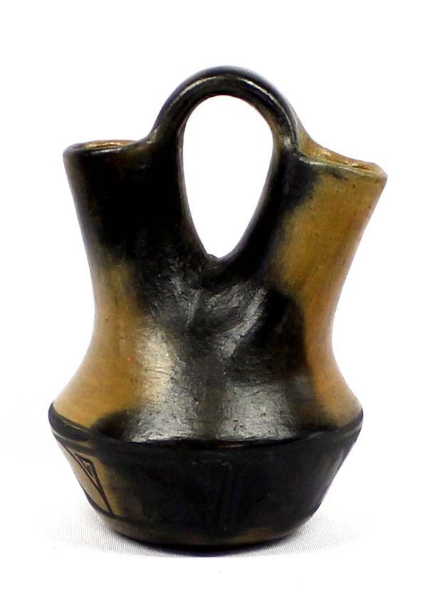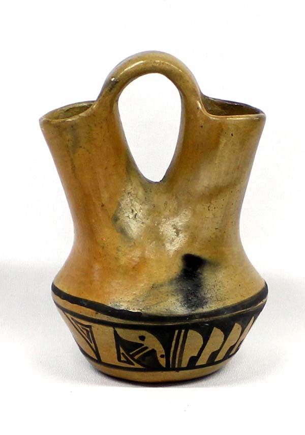 Vintage Native American Navajo Pottery Wedding Vase by Jerry Whitethorn (b. 1949) Page Arizona, measures 6'' x 4'' and is signed on the bottom, fire clouds present