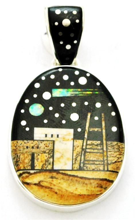 Navajo Pueblo Design Small Pendant - Calvin Begay