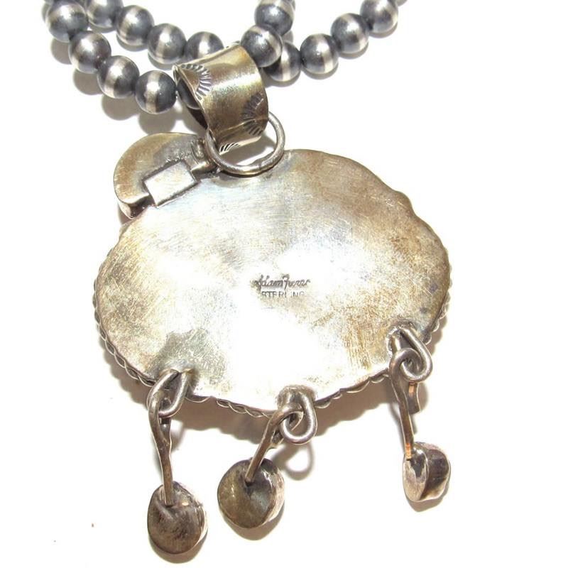 Navajo Rainy Cloud with Sun Pendant - White Buffalo & Spiny Oyster on 6mm Necklace ' By Adam Fierro ' One-of-a-Kind ' 3" Pendant This phenomenal Navajo pendant by Adam Fierro features a meaningful Rainy Cloud with the Sun Emerging motif - symbolizing resilience, renewal, and positive change after life's storms. It represents the sun breaking through the clouds, reminding us that brighter days always follow challenging times. Crafted with exceptional attention to detail, the pendant showcases a striking combination of White Buffalo stone, Turquoise and vibrant Spiny Oyster, each stone carefully selected to enhance contrast and character. The pendant measures approximately 3 inches in total length, offering a bold yet elegant presence. It is paired with an 18-inch strand of 6mm beads, perfectly complementing the pendant without overwhelming its design. Completely one-of-a-kind, this piece highlights Adam Fierro's ability to merge traditional Navajo symbolism with modern artistry. A phenomenal and meaningful addition to any collection. FREE SHIPPING ON ALL JEWELRY ORDERS WITHIN THE US! WE SHIP ALL ITEMS IN-HOUSE!