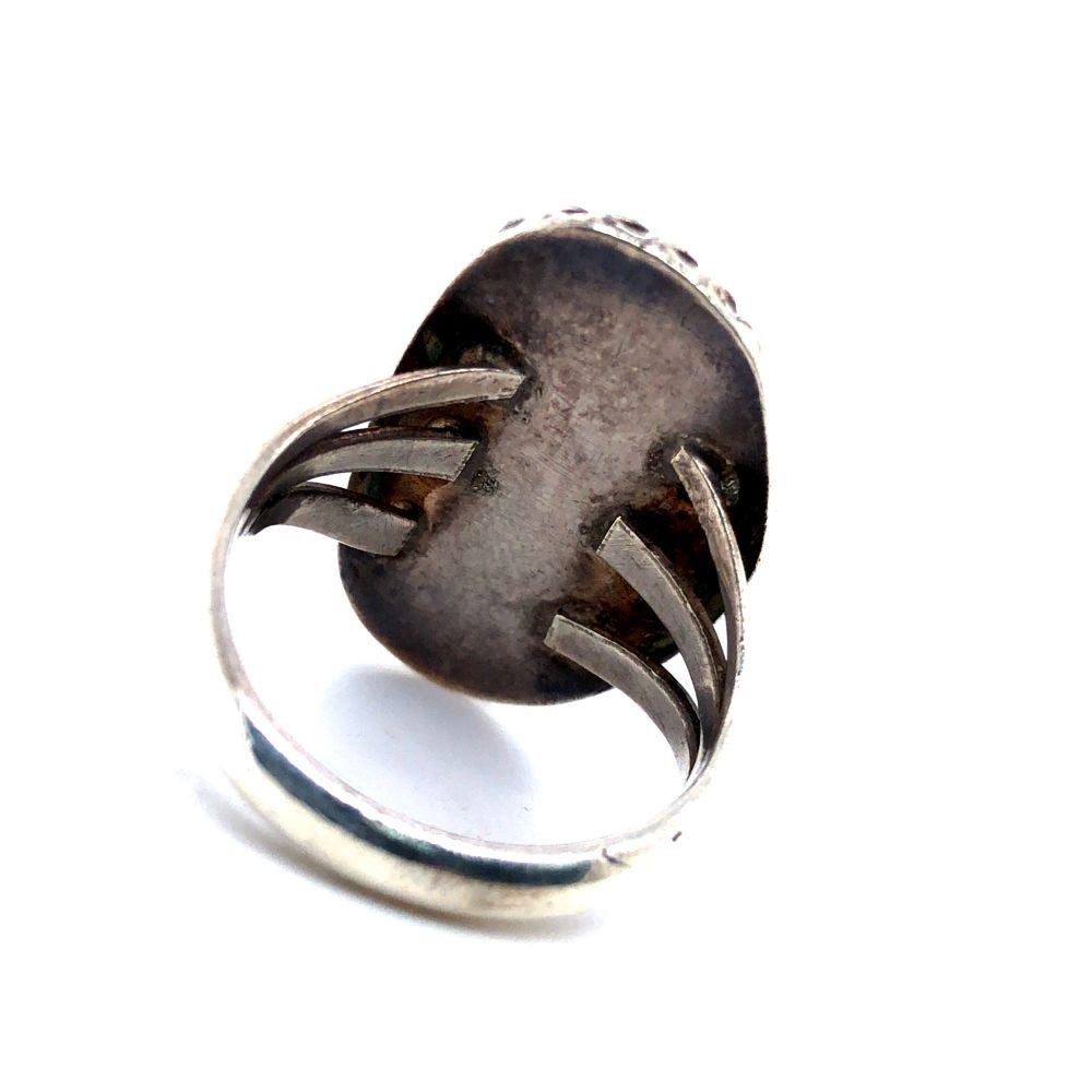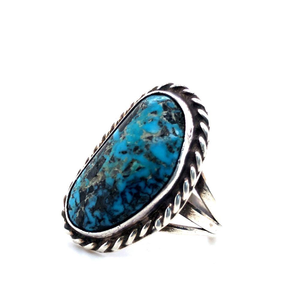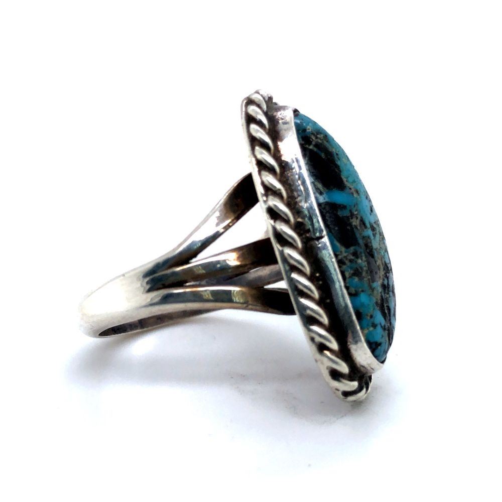 Vintage Beautiful Navajo Rare Stormy Mountain Turquoise Ringsize 6 3/4 L 1 " x W 5/8 "sterling silver
