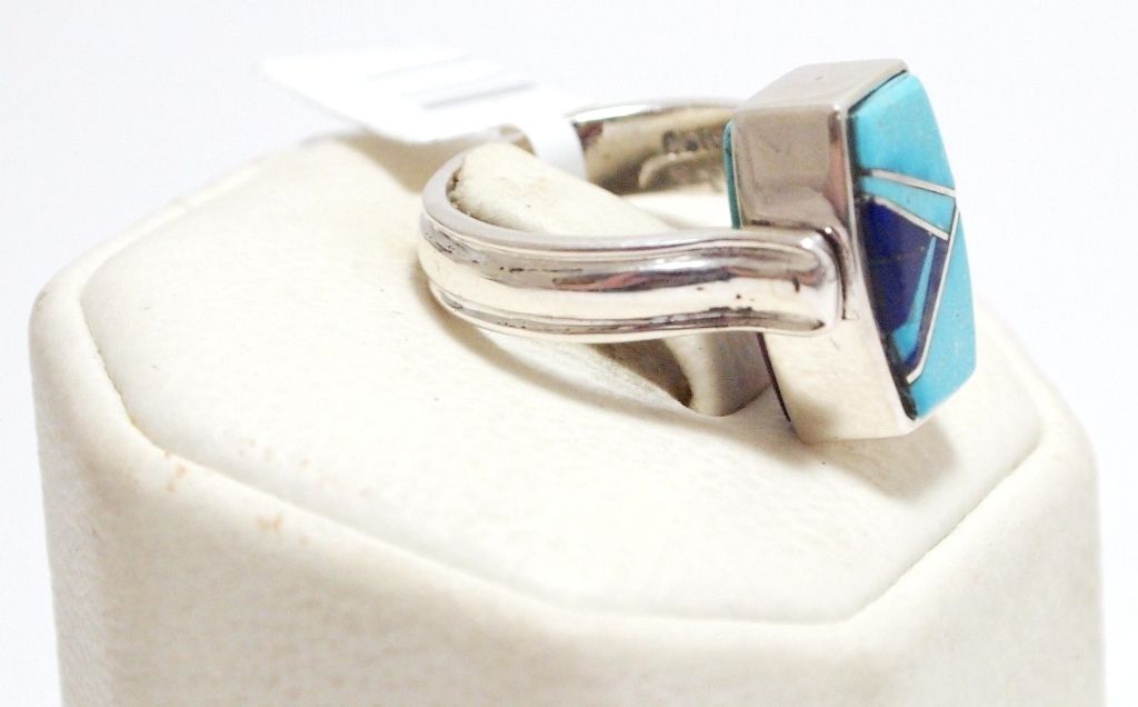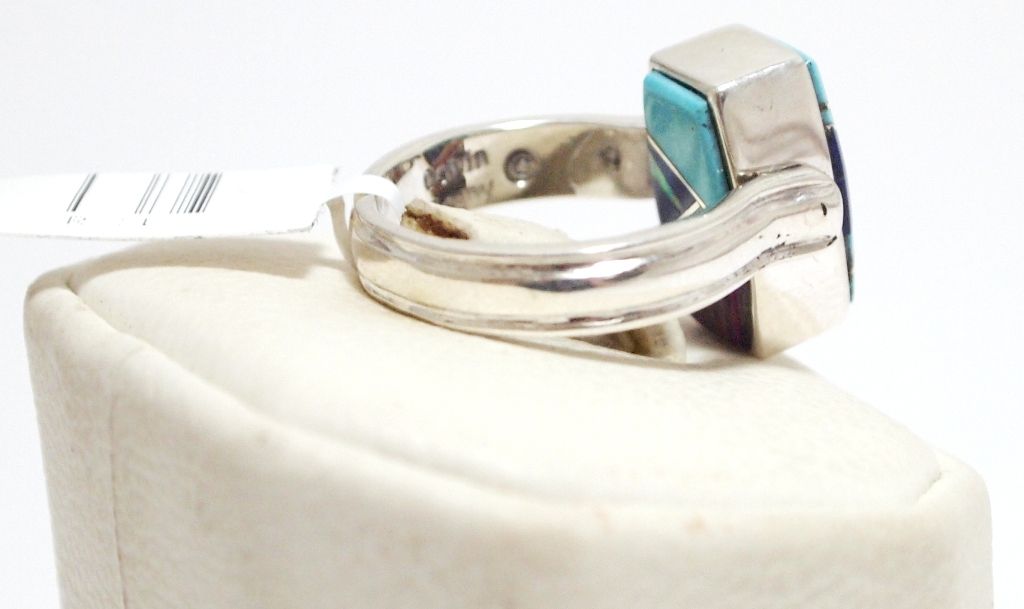 Navajo Reversible Spinner Multi-Stone Inlay Sterling Silver Women's Ring - Calvin Begay