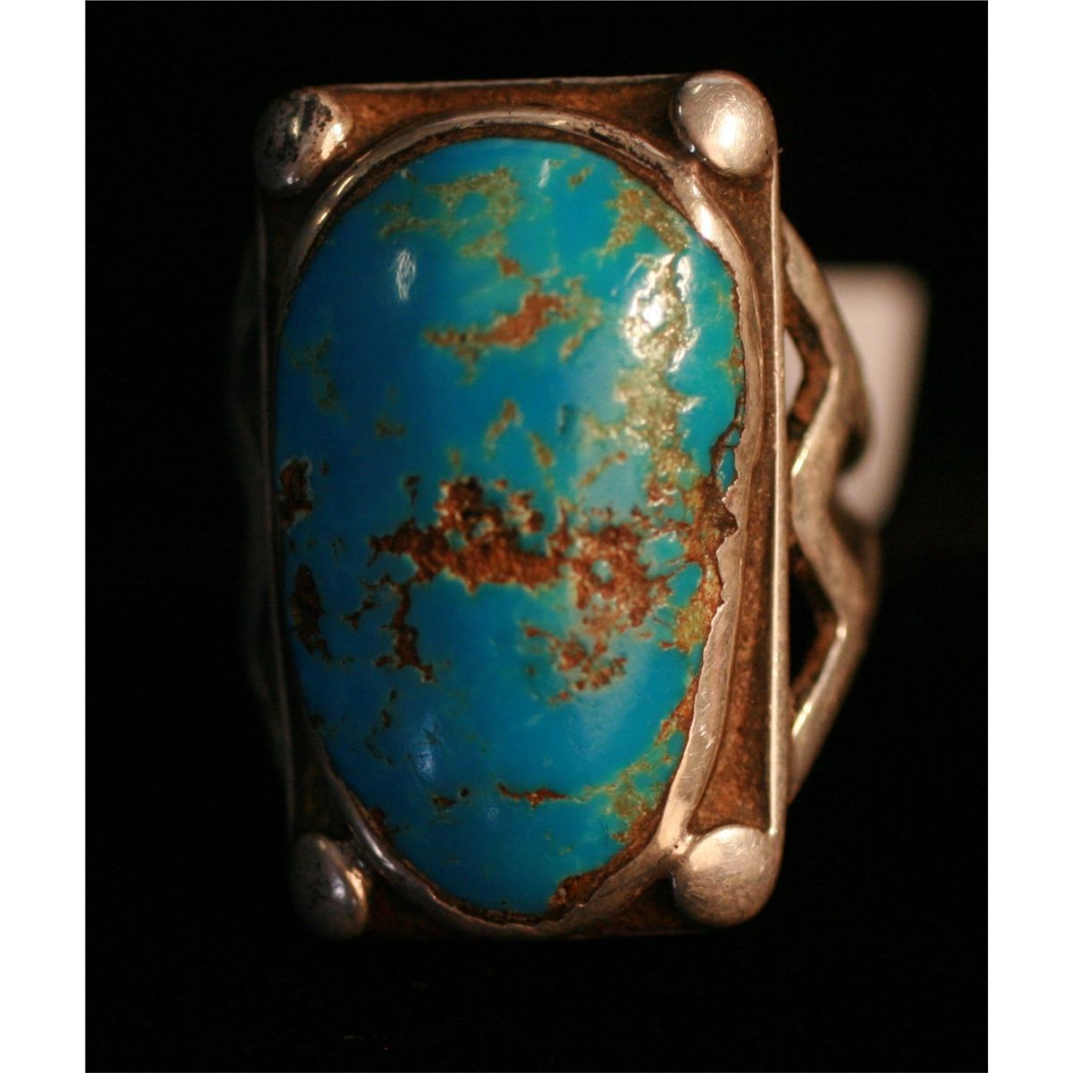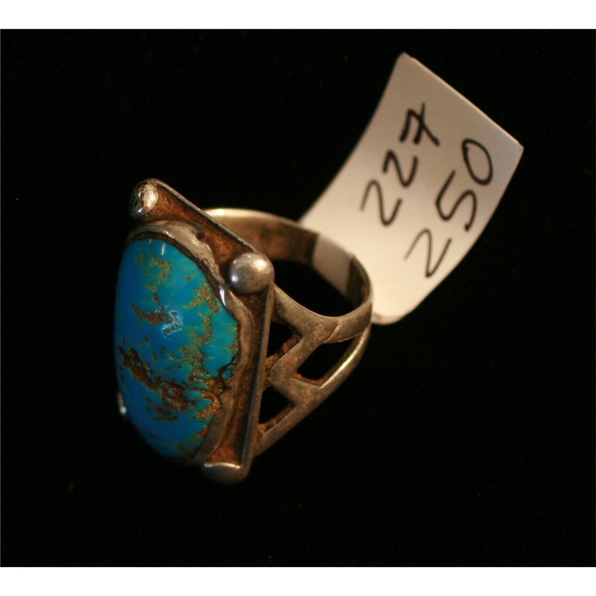 Navajo Ring, Sterling with turquoise cabochon and 4 rain drops, Reticulated mount sides, Size -1/2, -227250-
