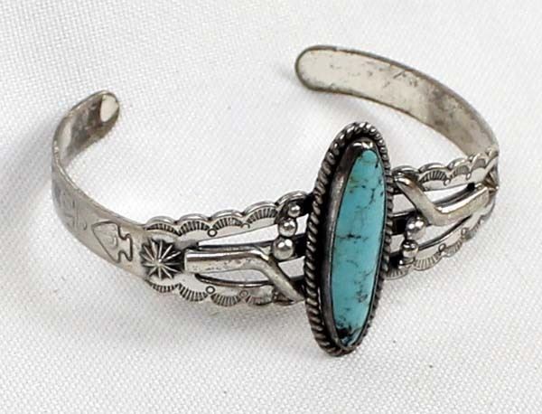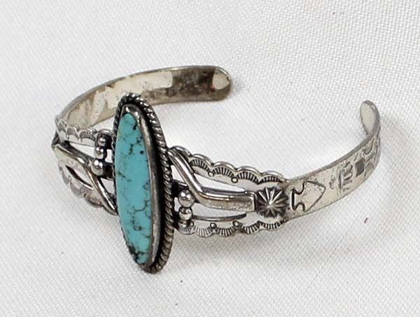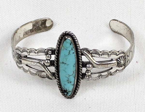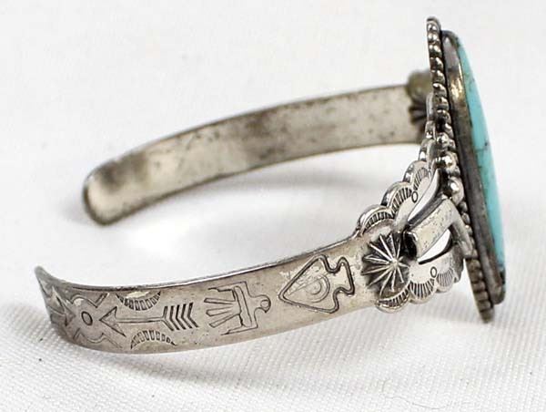 Native American Navajo Route 66 Sterling Turquoise Cuff Bracelet, inside measures 6.25'' (which includes the gap) x 1 3/8''W, hand stamped details