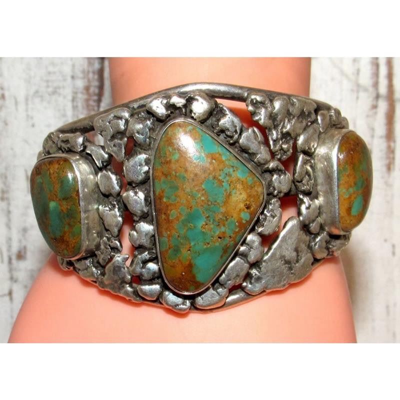 Navajo Royston Turquoise Statement Cuff Bracelet Sterling Silver Mary Chavez