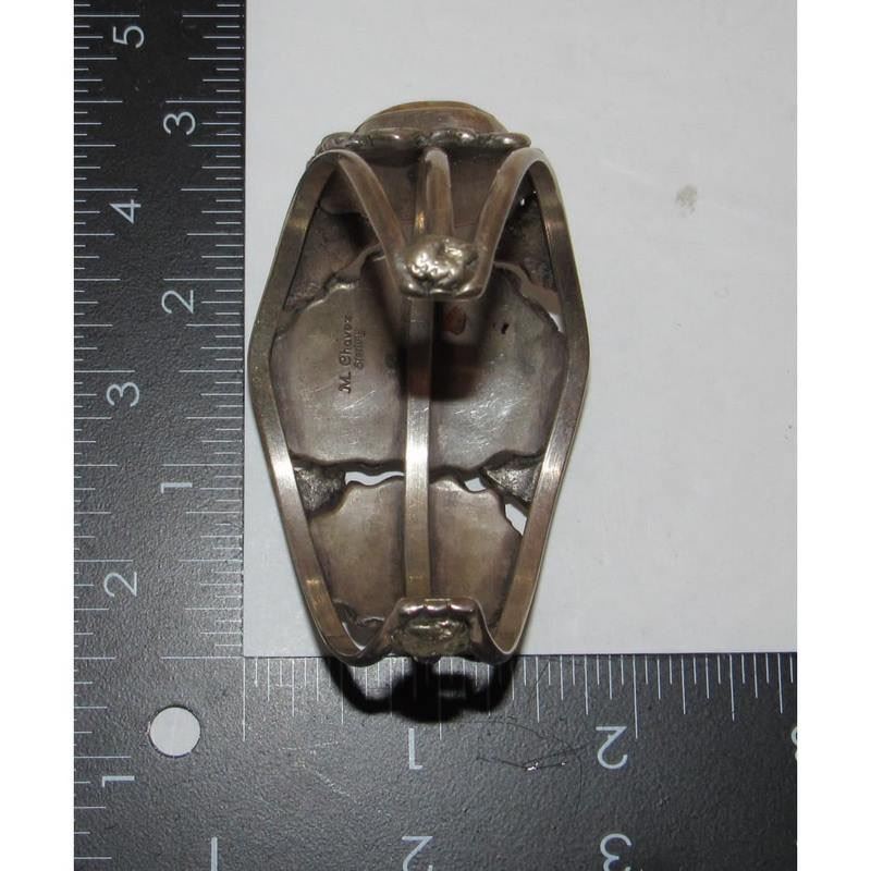 Stunning Navajo Royston Turquoise Statement Cuff Bracelet Sterling Silver Mary Chavez. The cuff features a unique contemporary design in sterling silver and three amazing larger Royston turquoise cabochons bracelet. The inside circumference is 6 3/4" and can be adjusted. The bracelet is about 1 1/2" wide at the widest point. It is Navajo hand made by the collectible Navajo artist Mary Chavez. Signed, marked, tested. The cuff weighs about 65g, Exceptional collector piece to add to any jewelry collection! WE SHIP ALL ITEMS IN-HOUSE!