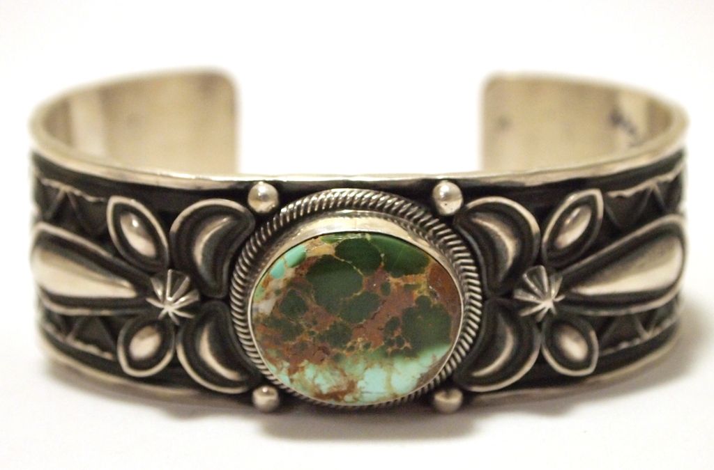 Navajo Royston Turquoise Sterling Silver Cuff Bracelet - Andy Cadman