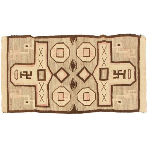Navajo Rug, 4'1" x 2'3", circa 1910-1920, one hole, approx 1" diameter