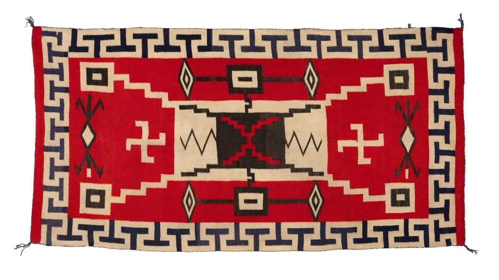 5'11" x 3'1" J.B. Moore weaving with waterbugs, rolling logs and meandering T border.