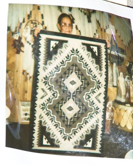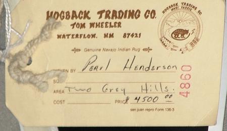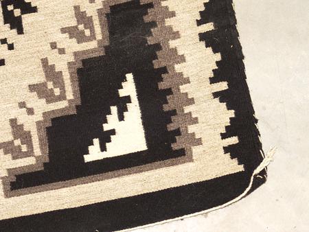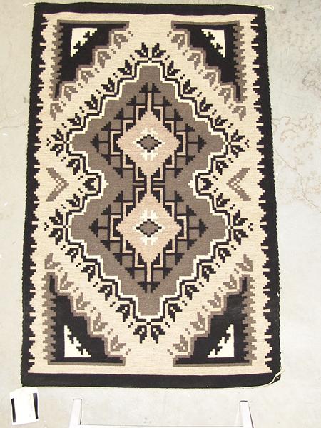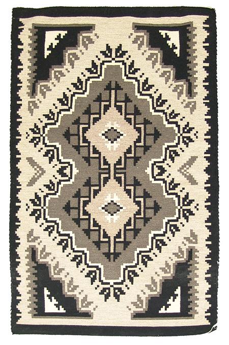 Circa Mid 1900s, Elegant extra-tight Two Gray Hills all natural homespun weaving on bordered gray ground - aligned pair of elaborate diamond lozenges. With picture. 4'4" x 2'7"