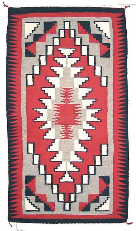 Circa Late 1900s, Beautiful fine weave 4-color Klagetoh rug with traditional motif. Very good condition. 33" x 60" From the Millican Collection.