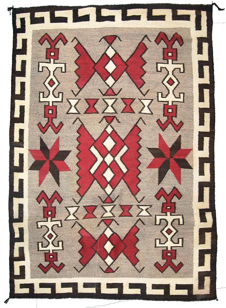 Circa 1940s, Large classic weave crystal floor rug with interesting geometric motif. Very good condition. 89" x 66"