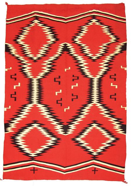 Circa 1900, Superb Germantown rug on red ground with serrated diamond design elements. A borderless rug that is believed to be 3-ply. Tight weave. 5'8" x 4'2"