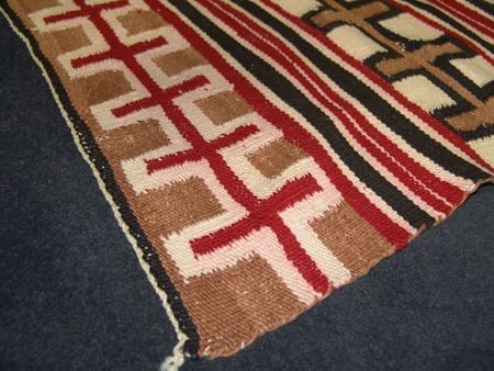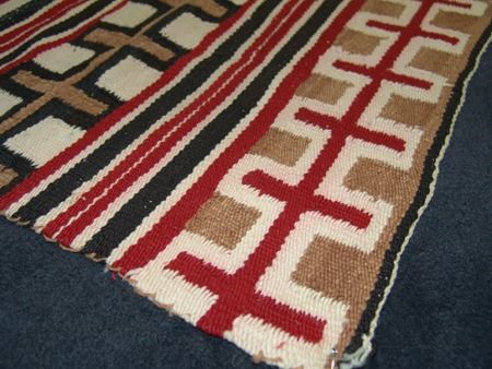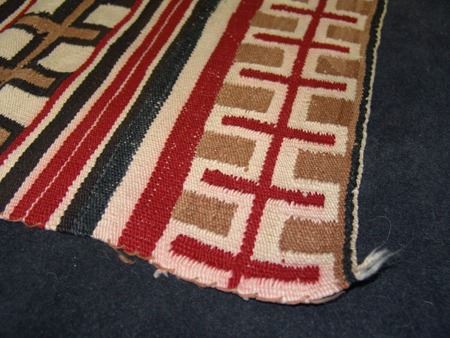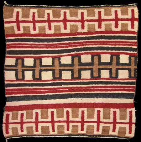 Mid 1900s, Small colorful soft weave single saddle blanket with striking geometric designs. Good condition, light bleed. 30" x 30"