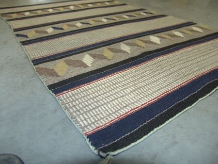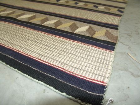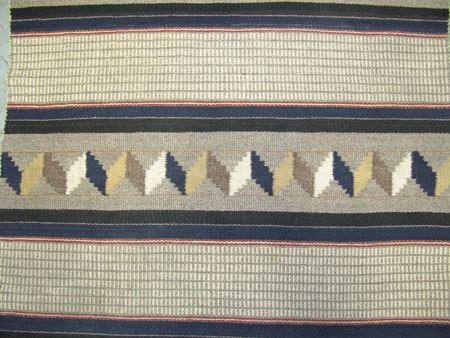 Ca. 1970s, Outstanding larger fine weave Wide Ruins rug with unique optical elements. Very good condition. 34-1/2" x 54-1/2"