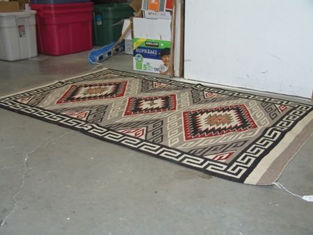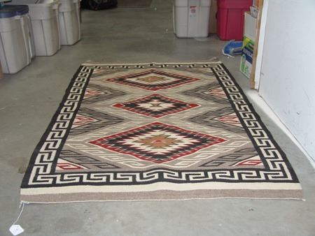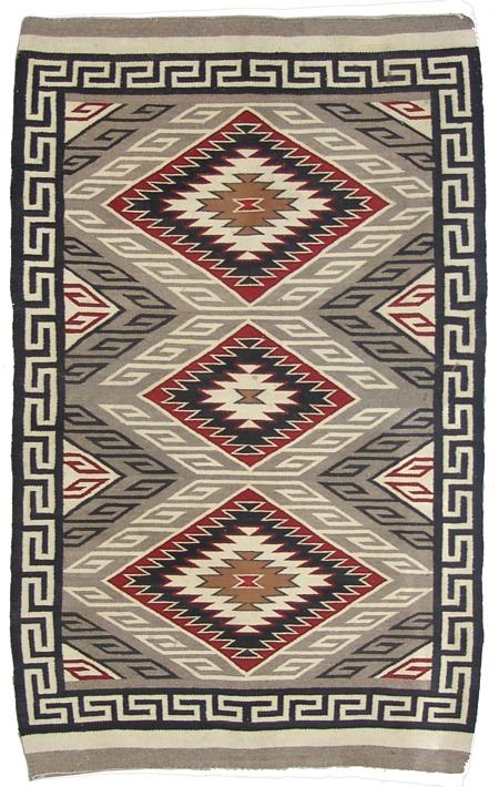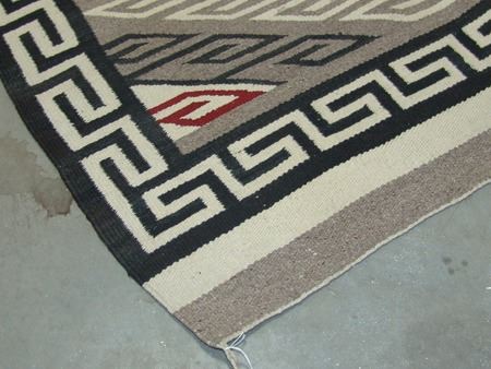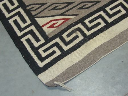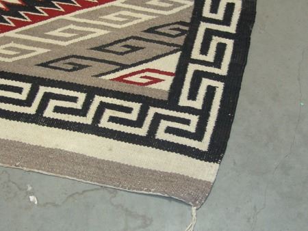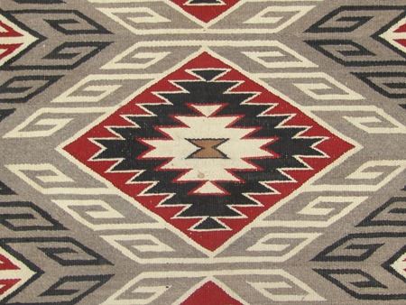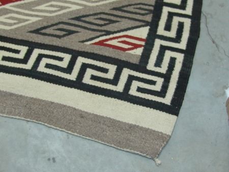 Ca. 1950s, Beautiful fine Red Mesa optical rug with crisp geometric designs. Very good condition. 67" x 42"