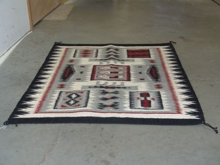 Ca. 1980s, Smaller fine weave "five-in-one" table/wall rug depicting five classic rug designs. Very good condition. 31" x 38"