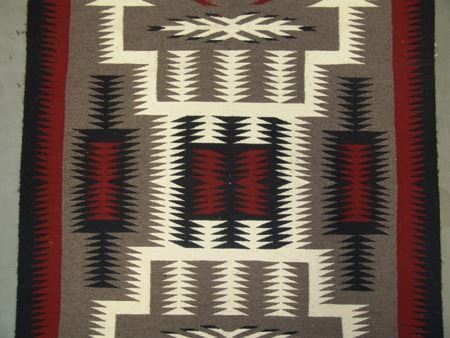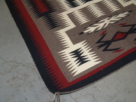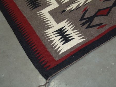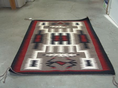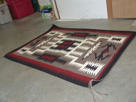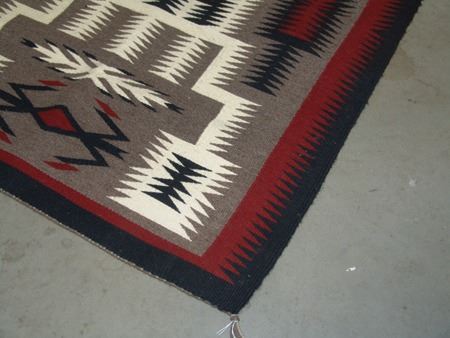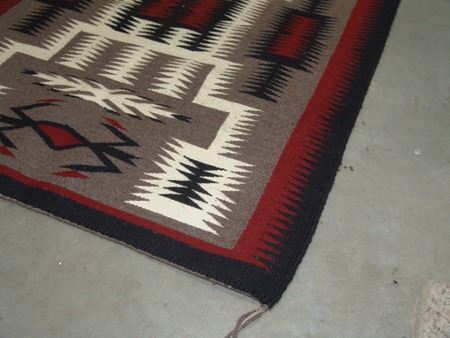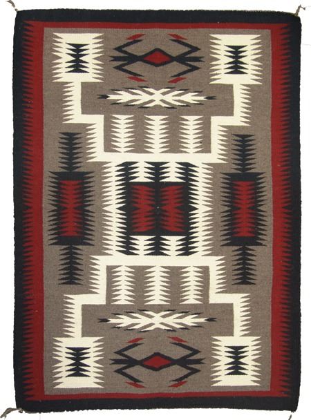 Ca. 1980, Very fine weave smaller storm pattern weaving with intricate serrated elements. Very good condition and great color. 33" x 44"