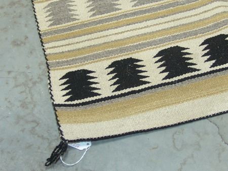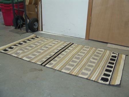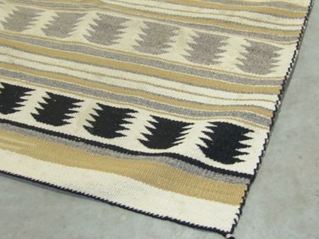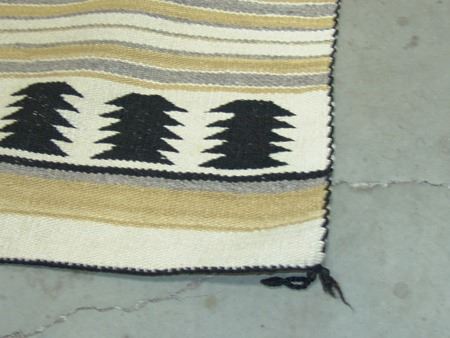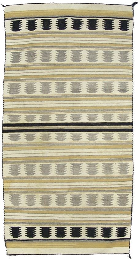 Mid 1900s, Vintage sturdy weave Pine Springs/Wide Ruins rug with fine wavy lines and serrated devices. Very good condition, light soiling. 61" x 31"