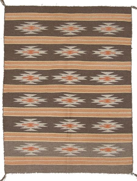 Late 1900s, Very fine weave Wide Ruins rug with wavy line elements. Very good condition. 38" x 29"