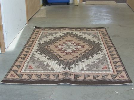 Ca. 1980s, Beautiful pastel earthtone raised fine weave rug with classic design. Very good condition. 32" x 53"