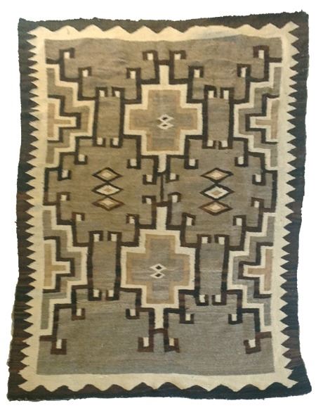 Ca. 1920s, Large fine geometric and serrated edge design weaving. A great early example. 70" x 46"