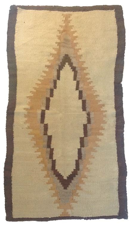 Ca. 1910s-1920s, Very early softer weave rug with lazy lines and naturally colored wool. 65" x 35"