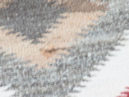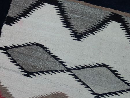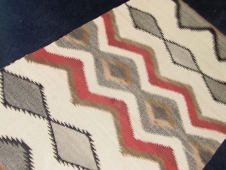 Ca. 1940s, Classic vintage homespun rug with traditional serrated elements. Good condition with a few minor repairs and minor edge issues. 69" x 41"