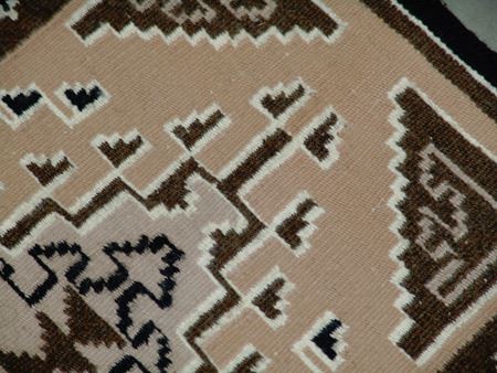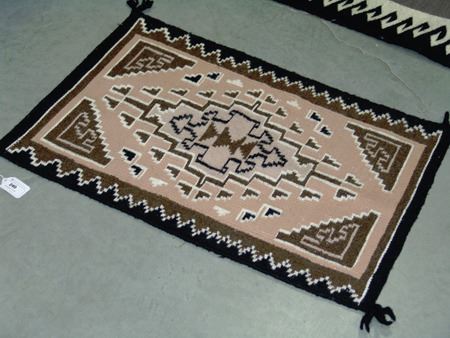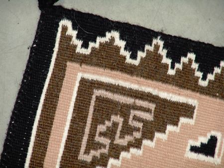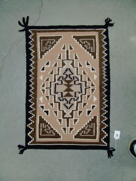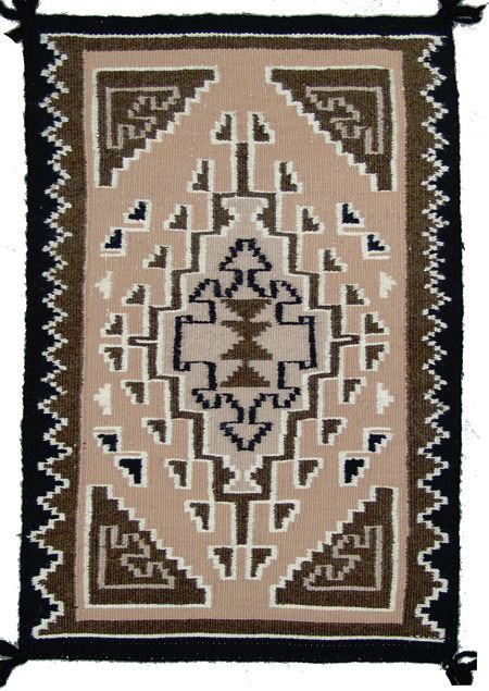 Ca. 1980s, Smaller fine weave Two Gray Hill rug with classic geometric designs done in beautiful earth tones. Very good condition. 24" x 16"