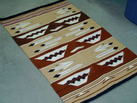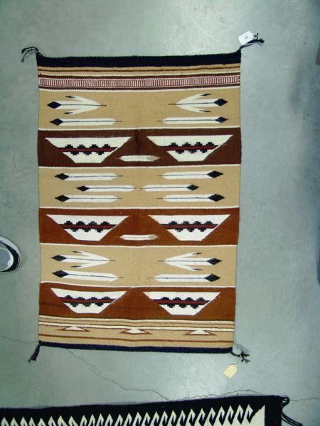 Ca. 1980s, Fine weave pictorial rug featuring Navajo wedding baskets and flowers. Very good condition, minor soiling. 36" x 25"
