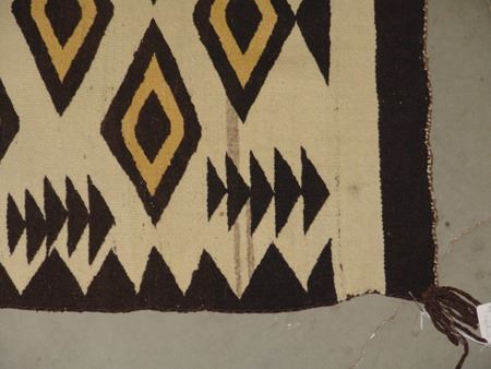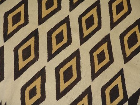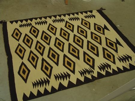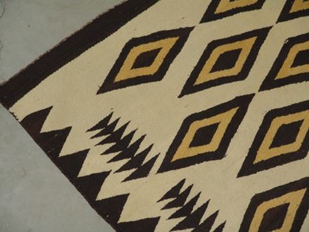 Mid 1900s, Vintage Crystal weaving of homespun wool with multiple two tone diamonds with serrated edges and stacked triangle figures. Good condition, a few minor repair but sturdy and intact. 52" x 43"