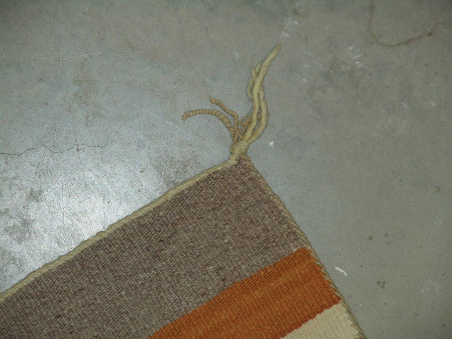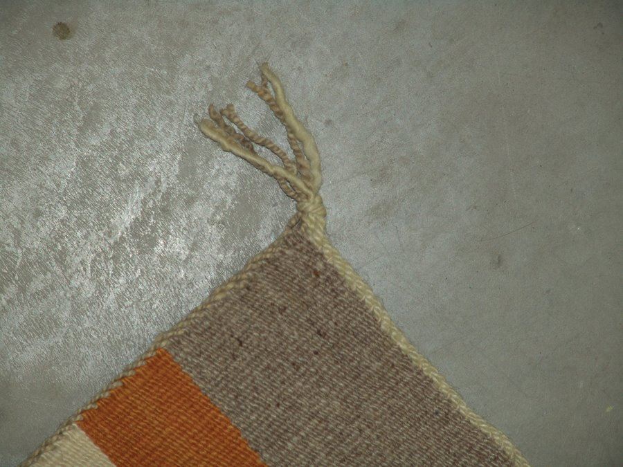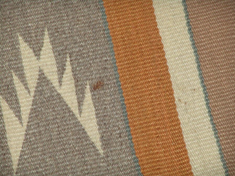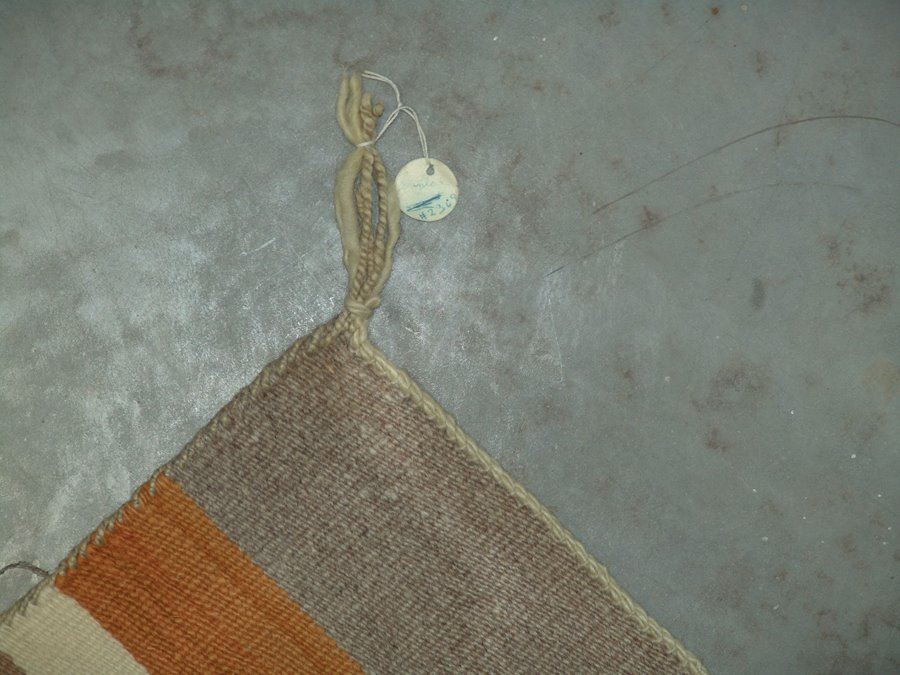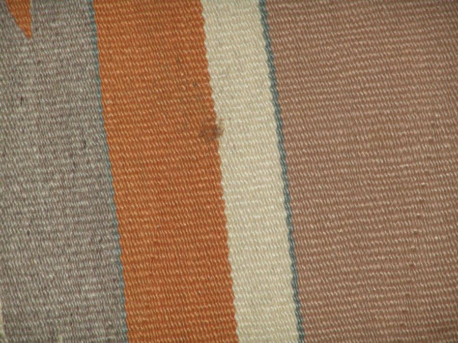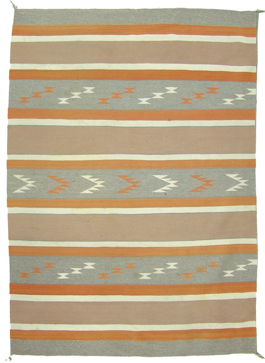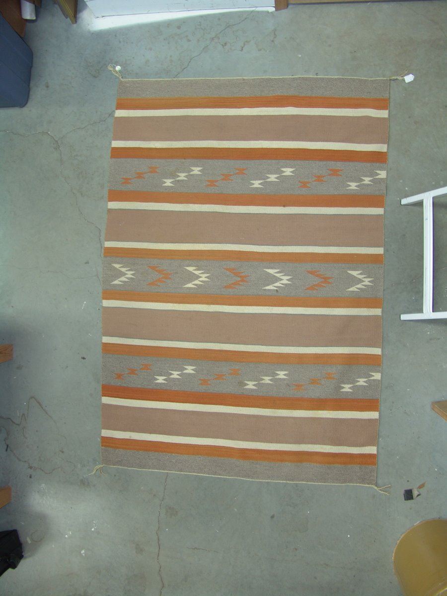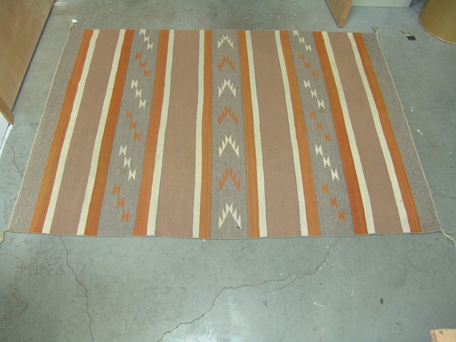 Large beautiful banded Crystal rug with five-color horizontal band and stepped spool figures all done in natural earth tone colors. Very good condition a few minor spots, some fade on one side.,Mid 1900s,72" x 50"