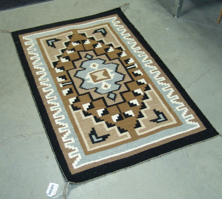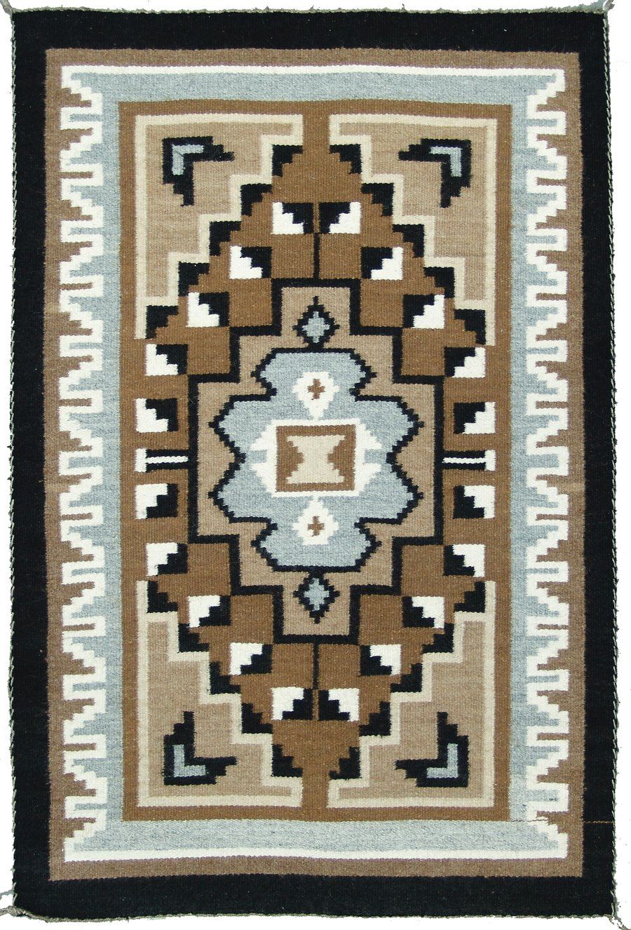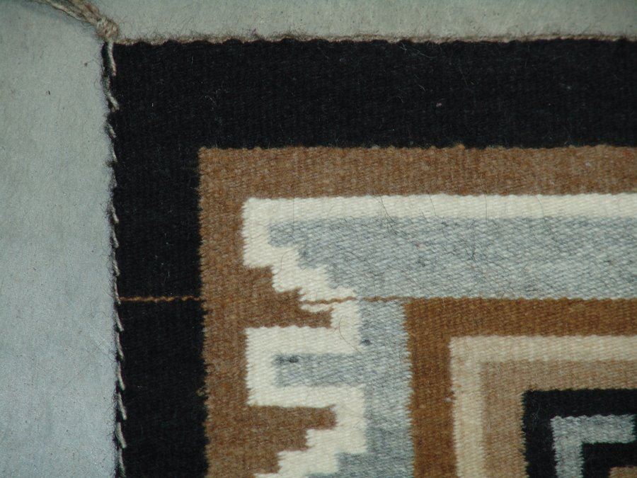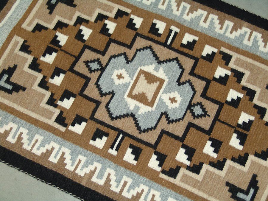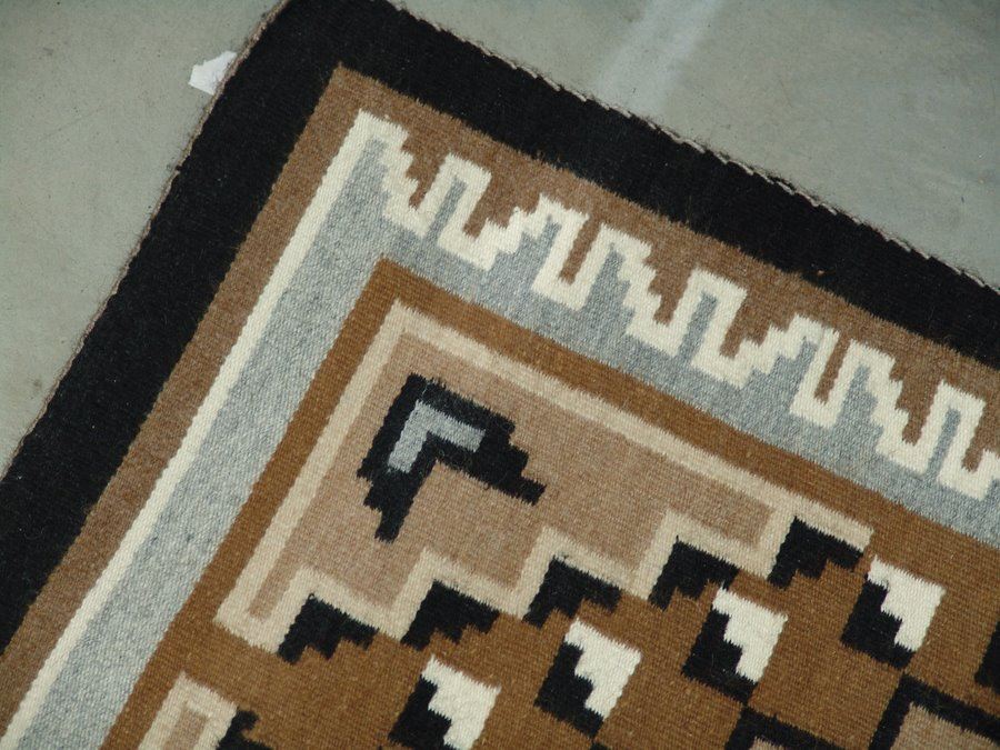 Small, very fine weave, Two Gray Hills rug with crisp geometric designs done in beautiful, natural earth tones. Very good condition.,,32" x 21"