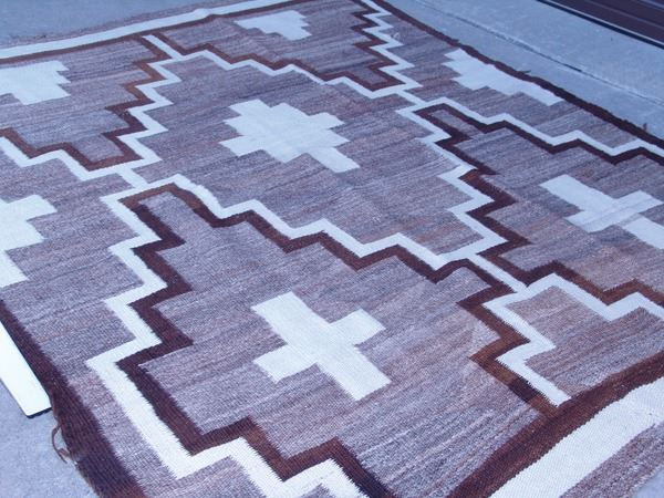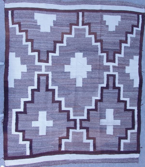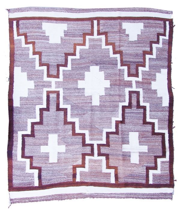 Large, early, soft weave blanket with crosses and diamond figures within larger, stepped diamonds. Good condition.Ca.1930s56" x 67"