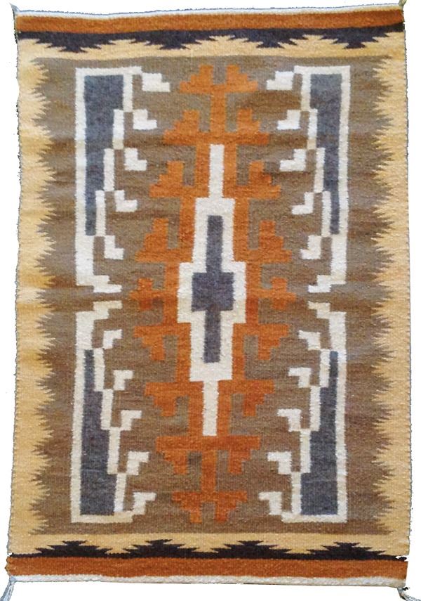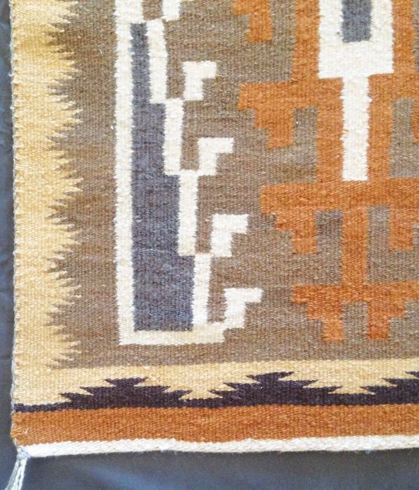 Beautiful, finer weave Klagetoh tapestry done in crisp, geometric earth tones. Very good condition.Ca. 1970s44" x 28"